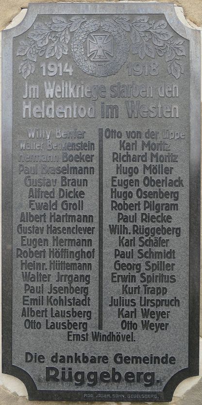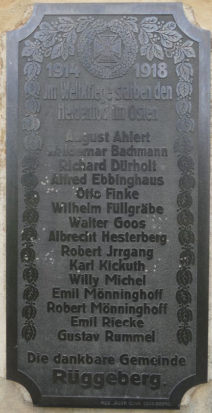 Bericht zum Kriegerdenkmal aus dem Manuskript "Chronik von Rüggeberg" aus dem Jahre 1968 geschrieben von Robert Brockhaus